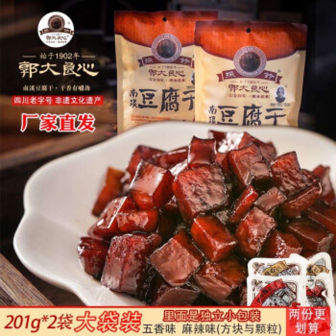 张飞传人烧烤手磨豆干188g 卤香*2